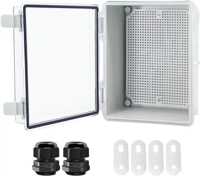 Money Saving Junction Box Sets The junction box includes a mounting plate, 4 Wall Brackets, and 2 cable glands. The ABS project boxes can be drilled and shaped easily without cracking, so its almost suitable for your all DIY projects.