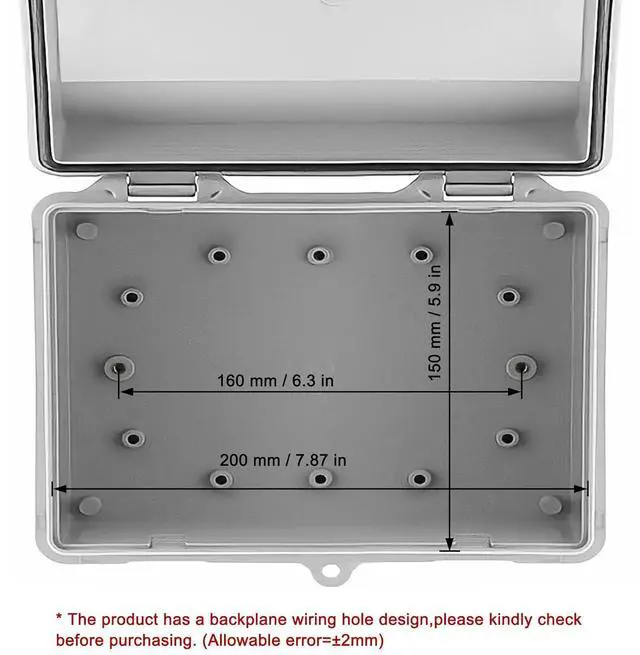 External Size: 400 x 300 x 180mm/ 15.7 " x 11.8 " x 7" (L*W*H) (This size Junction Box has an internal panel. )