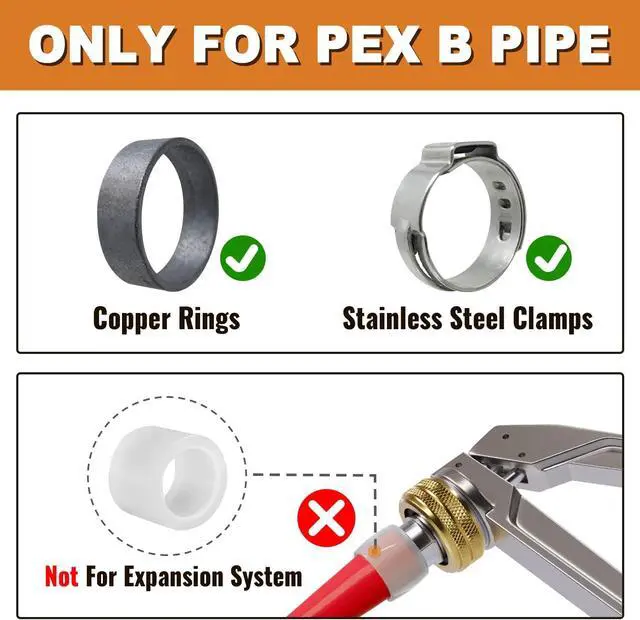 PIPE COMPATIBILITY: This pex washing machine outlet box is ONLY compatible with crimp pex fitting system, NOT compatible with expanding fitting system. Its inlets work well with 1/2 inch PEX B pipes; the outlets fit well with 3/4 inch FHT washing machine hoses.