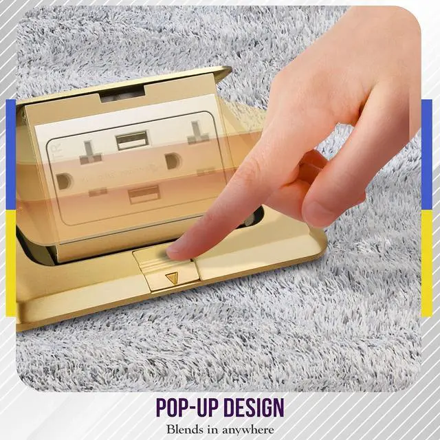 Provides a surface mounted pop-up outlet for commercial or residential locations. Ideal for use in kitchen islands, counter tops, and bathroom vanities