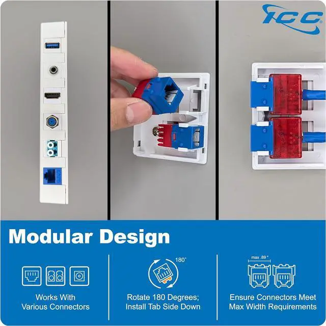MODULAR DESIGN: Supports slim and wide profile keystone jacks, including CAT6A, CAT6, CAT5e, voice-grade, fiber optic, and audio/video connectors.