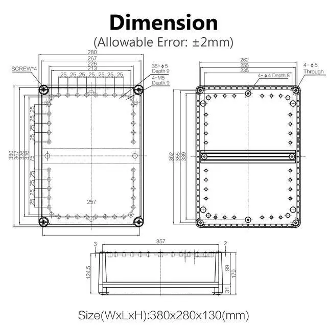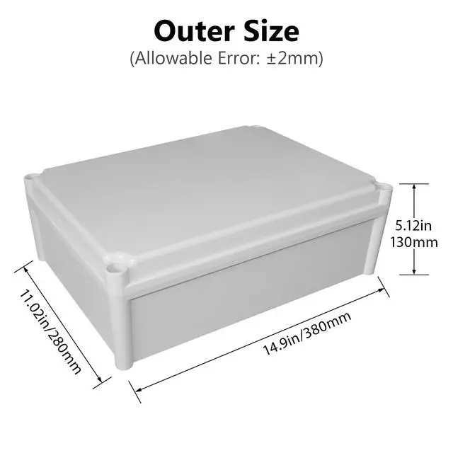 Outer Size: 15" x 11" x 5.1 " /380 x 280 x 130mm (L*W*H); Inner Size(Approx. ): 14.2 " x 10.2 " x 4.8 " /360 x 259 x 121mm (L*W*H) - - *Tips: in order to confirm the detailed installation dimensions, please refer to our detail image, which shows specific internal dimensions of the product. (Allowable