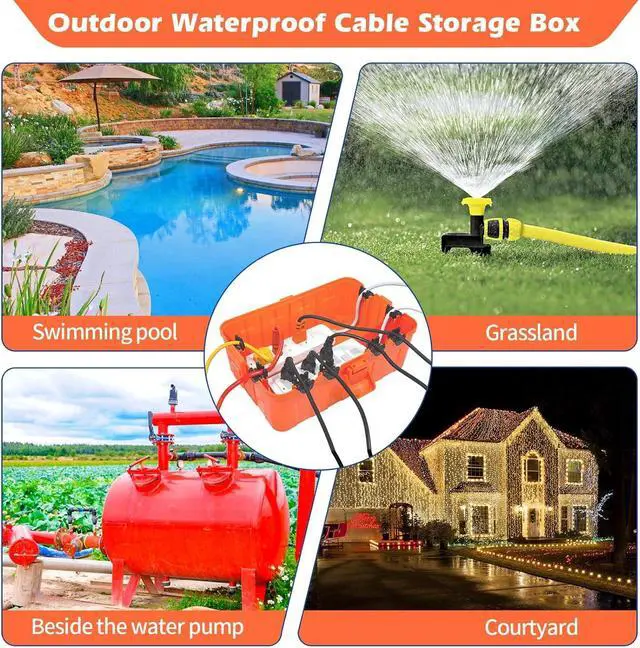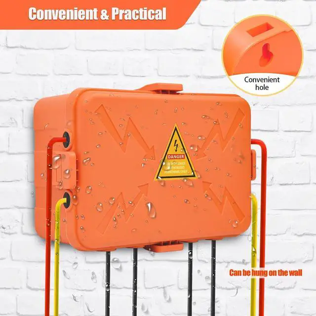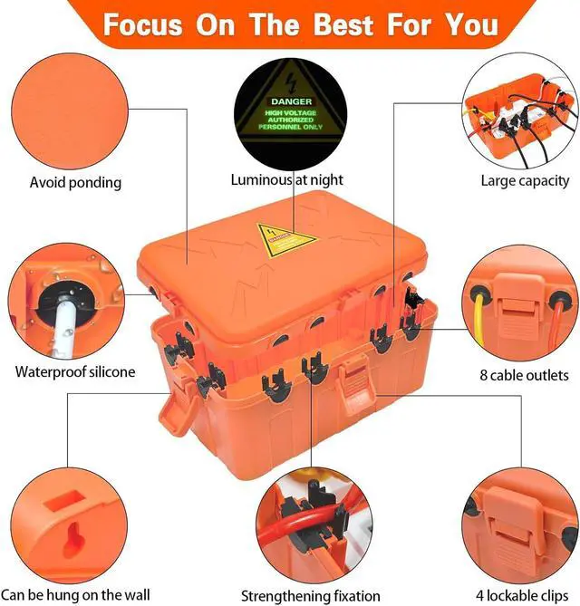 • Strong SealingWith 4 snap, 8 cable clamps, 8 rubber gaskets, this outdoor extension cord cover box is IP54 waterproof. Perfect for sealing 12/14/16 gauge wire, braided cable and flat cable.
