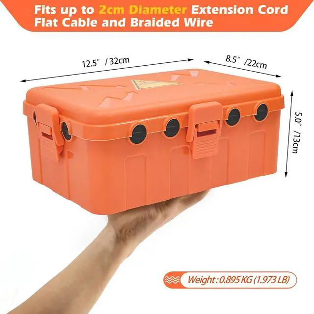 Strong SealingWith 4 snap, 8 cable clamps, 8 rubber gaskets, this outdoor extension cord cover box is IP54 waterproof. Perfect for sealing 12/14/16 gauge wire, braided cable and flat cable.