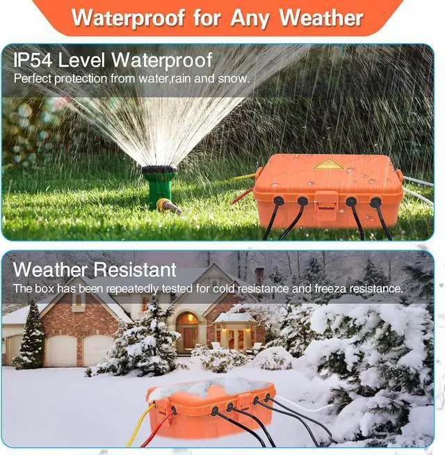 Heavy-Duty and IP54 WaterproofMade of heavy-duty reinforced PP material, rigorously IP54 waterproof and -40 degree Celsius freeze tested, it can withstand up to 300 lbs, and can withstand rain, water, snow, dust, dirt, etc. It continuously protects outdoor connections from electrical hazards.