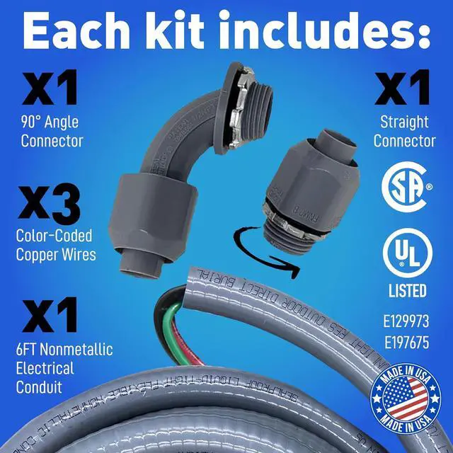 Applications: Air condition unit hook up; heat pumps; pools; spas; outdoor lighting; motors and controls; solar panels