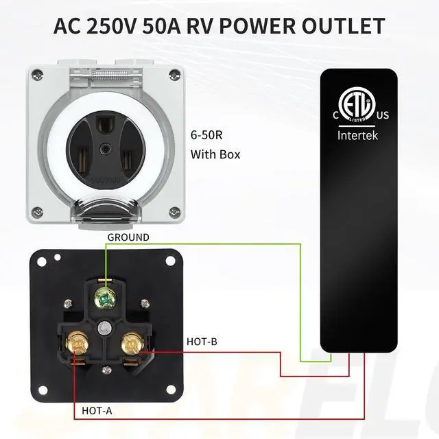 • Specifications: NEMA 6-50 Receptacle, one power outlet with protective box.