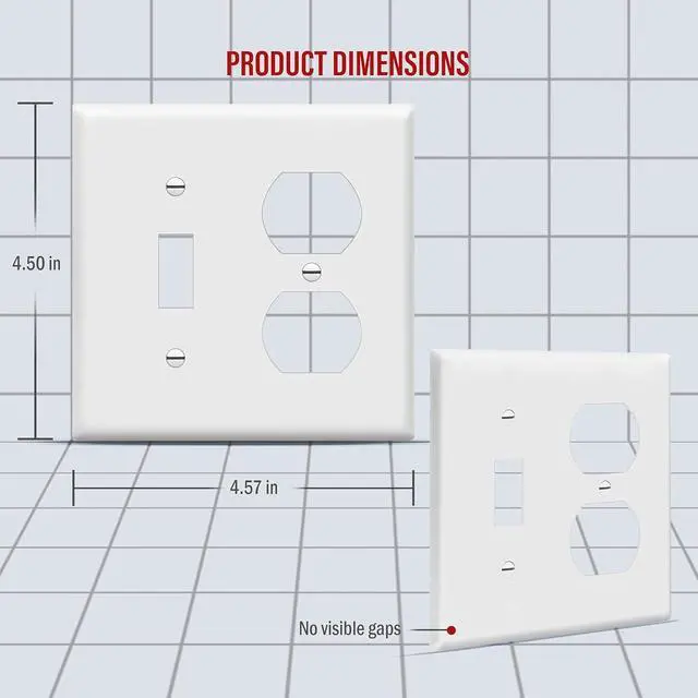 Dimensions: 4. 50 height x 4. 57 lengthSmooth finish without recessed lines and soft edges allows for easy cleaningIncludes screws to match the wall plate; UL-listed