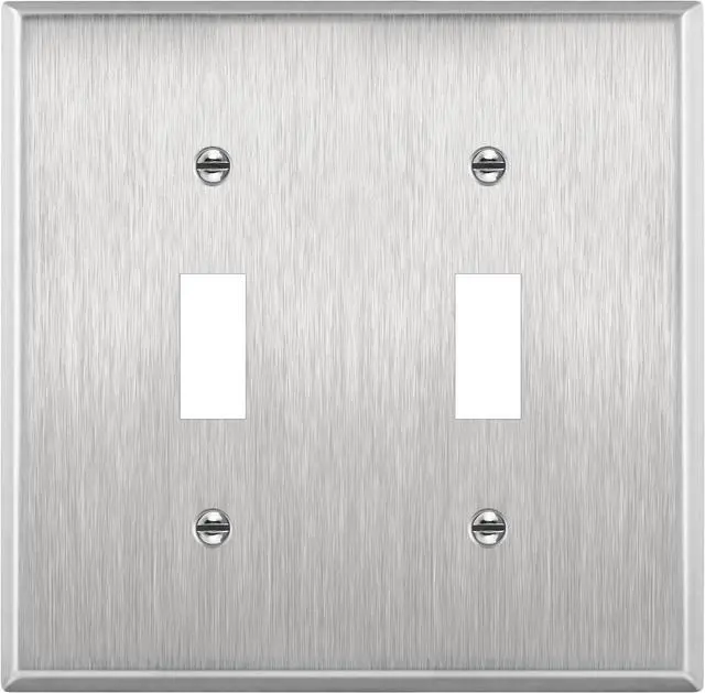 Engineered for extended life span in abusive and corrosive environmentsWall plate made of 430 stainless steel for any commercial or industrial applicationsCurved and smooth edges protect from foreign objects while providing a safe cover to wiringElegant smooth brushed finish and contoured edges enhance appearance while maintaining functionalityScrews to match finish of wall plate included