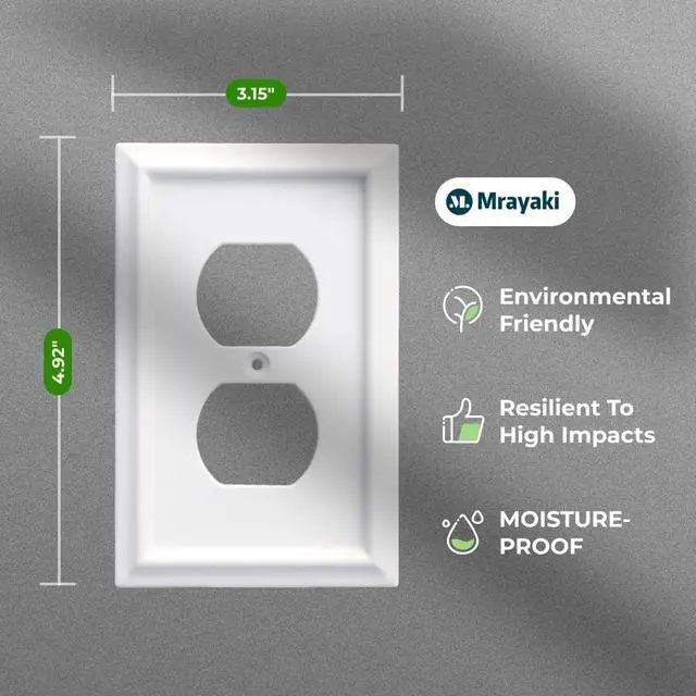 Classic & Simple DesignThe Modern white finish coordinates with white outlets switches and trim for a bright clean look. Mrayaki wall plates provide a wide range of styles and finishes to compliment every decorNatural Fiber MaterialMade of Natural BM Fiber for style and durability. Never easy to broke the outlet cover will maintain its finish for years features a shining glossy white color thats anti-yellowishEasy to InstallMachine screws in a matching finish are included for easy installation ideal for updating or remodeling anywhere of your homeWide ApplicationThe decorative wall plates match in various formats can be widely used in dimmer toggle switch outlet receptacle GFCI outlets etc.