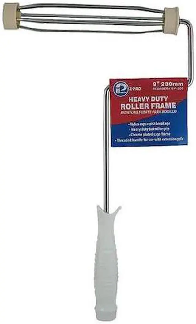 Paint Roller Frame, Roller Length 9 in, Roller Frame Style Cage, 17 in Overall Length, Paint Roller Type Roller Cage/Roller Frame/End Cap, Handle Material Plastic, Handle Type Threaded, Paint Type All Paints, Handle Color White, Plating Chrome, Roller Frame Type Standard, Shank Material Steel, Shank Wire Size 5/16 in. This item has been restricted from sale in the following state (s): []