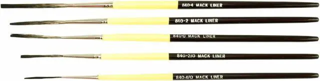The #840 Outliner is made with synthetic squirrel hair. This is a new synthetic that gives you the benefits of a natural haired brush. It is a soft hair that holds a lot of paint and gives you good snap.