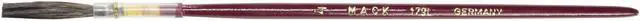 The Andrew Mack Brown Kazan Quill Series 179L is ideal for lettering. The brown squirrel-hair quills are handmade in Germany. This brush works best on smooth surfaces such as glass and automotive bodies. Brown quills are slightly softer than grey quills.