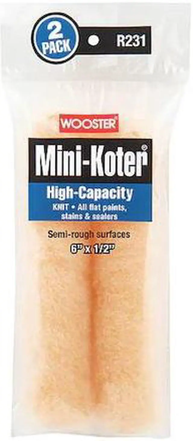 Mini Paint Rollers, Cover Type Standard, Surface Texture Semi-Rough, Compatible Roller Frame Style Wire, 6 in Overall Length, 1/2 in Nap Size, Surface Material Brick, Concrete, Drywall, Masonry, Paint Type Flat Paints, Stains, Core Diameter 1/4 in, Cover Material Knit Fabric, Package Quantity 2