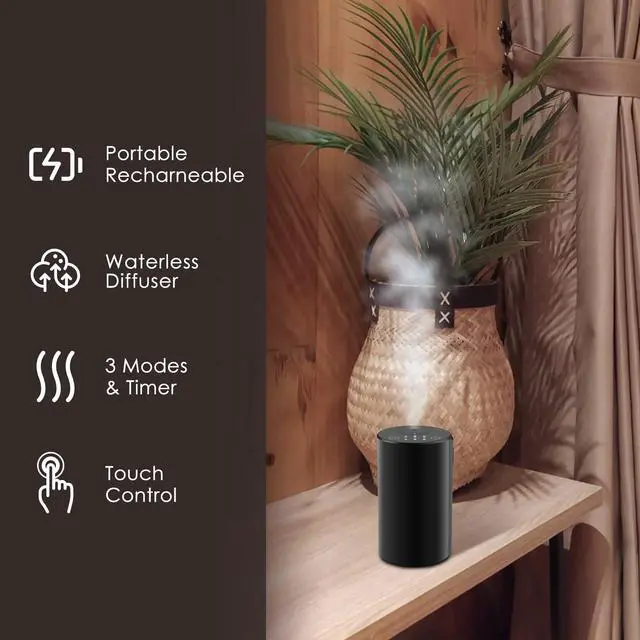 • Portable & Versatile Car, Home, Office, TravelSmaller than a soda can, this waterless diffuser fits in car cup holders, on desks, or in bags. A cordless, automatic mini device that brings spa-like freshness to your desk, soothing lavender to your bedroom, or an energizing scent on road trips360° fragrance anywhere