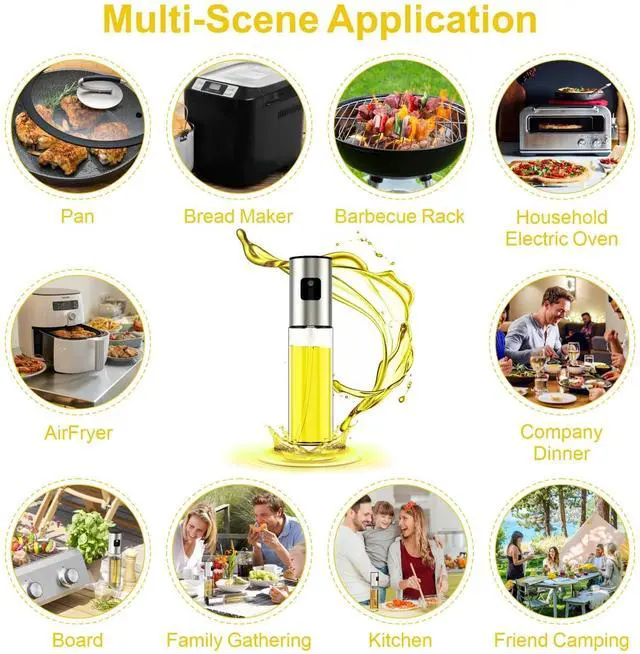 Durable glass bottle with stainless steel sprayer top ensures long-lasting performance and even oil distribution