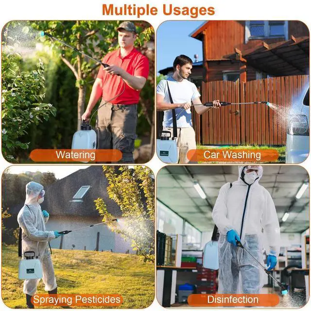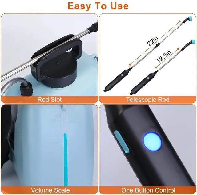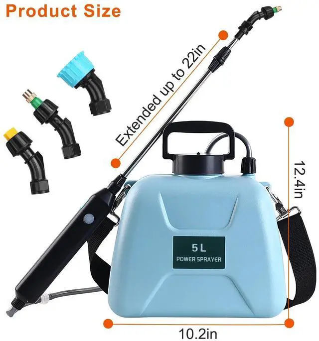 Effortless Spraying:Our portable sprayer automatically dispenses water once you touch the power button. Help you free your finger from continuous pressing,spraying and get rid of tiring of your hands and wrist. Come with an adjustable strap,you can carry our sprayer wherever you go. The telescopic rod enables the water spraying more widely.