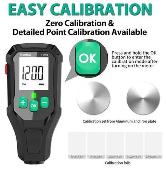 Paint Thickness Gauge, Digital Car Coating Depth Gauge Tester with Resol 0.1Mil, Portable Paint Mil Thickness Meter for Used Car Buyers Auto Detailers, F/NF Measuring, Auto-Off, Data Storage