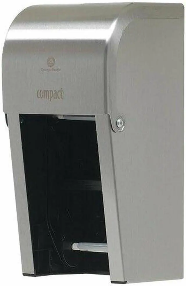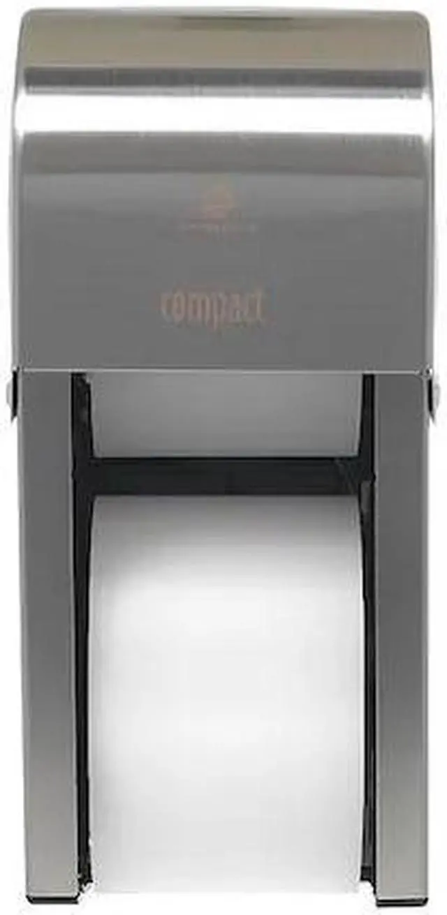 Toilet Paper Dispenser, Coreless, Compact (R), Dispenser Capacity (2) Rolls, Vertical Double Roll, Dispenser Material Steel, Finish Stainless, Silver, Dispenser Depth 6 1/2 in, Proprietary, Ligature Resistant No, ADA Compliance Yes, Dispenser Height 13 1/2 in, Dispenser Mounting Wall, Dispenser Width 6 in, Compatible Grainger Part Number 1FC17, 1LYJ5, 32GV94, 3APV7, 3APV8, 4TH42, Compatible Mfg. Model Number 19371, 19372, 1937300, 19374, 19375, 19378, Sublease Requirement Sublease Not Required