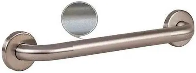 Grab Bar, Product Type Wall Mounted Grab Bar, Bar Style Straight, Bar Material Stainless Steel, Finish Peened Satin, Bar Diameter 1 1/4 in, Bar Length 18 in, Overall Length 21 in, Weight Capacity 800 lb, ADA Compliant Yes, Degree of Bar Angle Not Applicable, Center to Center Hole Distance 18 in, Mount Orientation Not Applicable, Includes Mounting Hardware Yes, Color Silver, Features Anti-Slip Grip, Includes Stainless Steel Screws, Standards 2010 ADAAG, 2017 ANSI, ADA Compliant. This item has been restricted from sale in the following state (s): []