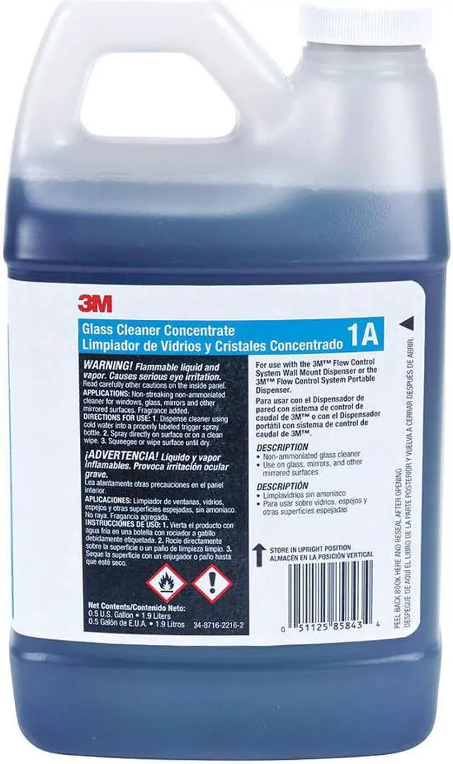Glass Cleaner, Label Number 1A, Label Color Coding Blue, Cleaner Form Liquid, Container Size 0.5 gal, Container Type Trigger Spray Bottle, Fits Dispenser Series Flow Control, pH Level 11.4, pH Value Alkaline, Primary Chemical None, Recommended Dilution 1:70, Concentrated, EPA Registered Yes, Flash Point 120 Degrees F, VOC Content 0 Percent, Fragrance Unscented, Standards EPA Registered, Green Seal, OSHA, Surfaces for Use On Ceramic, Chrome, Glass, Granite, Mirror, Porcelain, Stainless Steel. This item has been restricted from sale in the following state (s): []