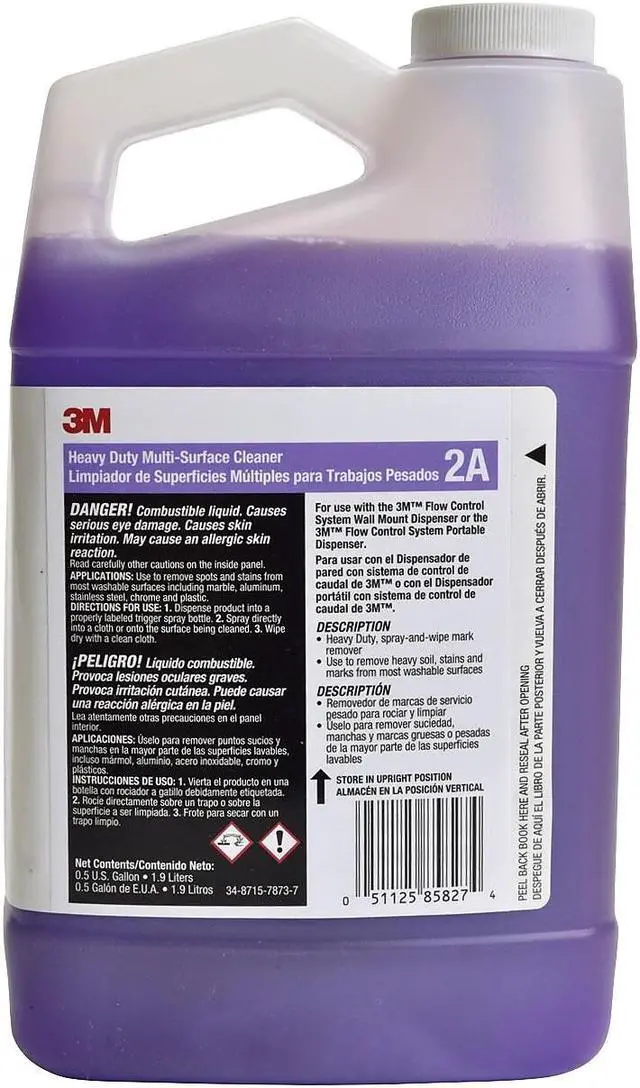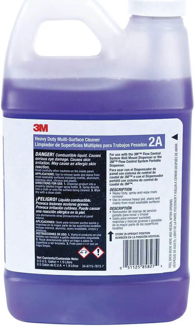 Heavy Duty Multi Surface Cleaner, Label Number 2A, Label Color Coding Purple, Cleaner Form Liquid, Container Size 0.5 gal, Container Type Bottle, Fits Dispenser Series Flow Control, pH Level 11.6, pH Value Alkaline, Primary Chemical None, Recommended Dilution 1:13, Concentrated, EPA Registered Yes, Flash Point 185 Degrees F, VOC Content 0 Percent, Fragrance Citrus, Standards OSHA Hazard Communications Standard, Safety Data Sheets, EPA and 29 CFR 1910.1200. This item has been restricted from sale in the following state (s): []
