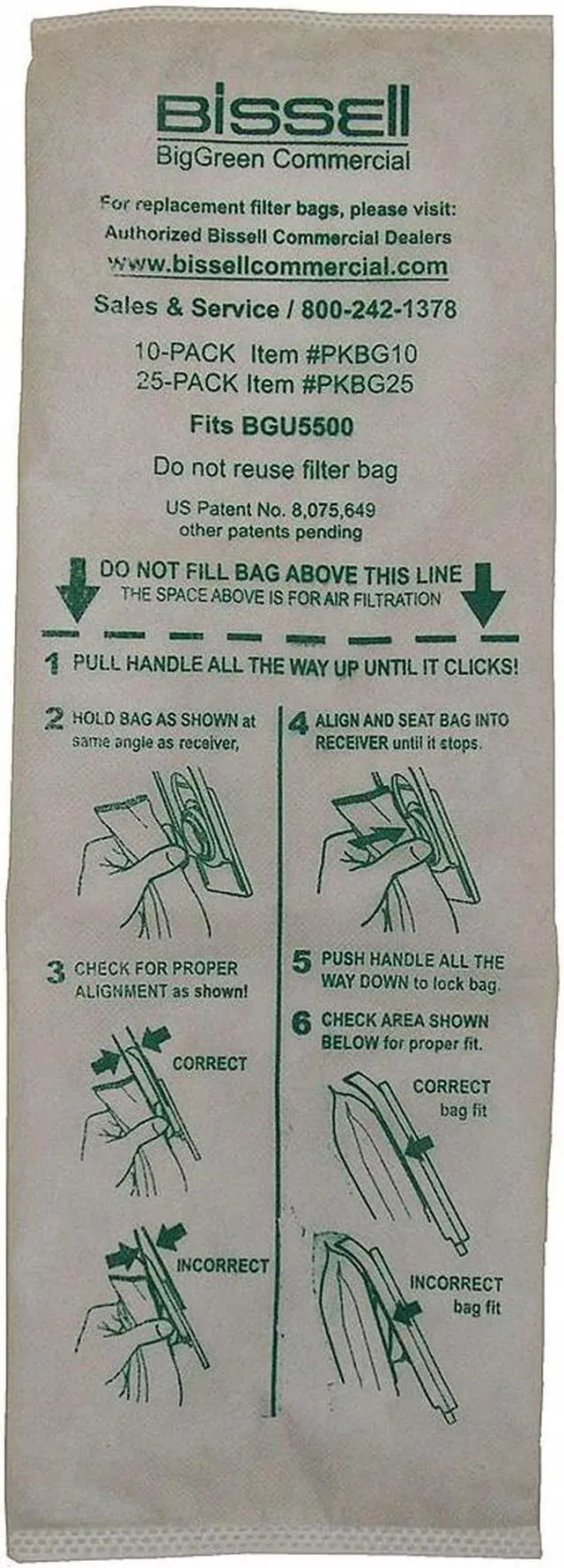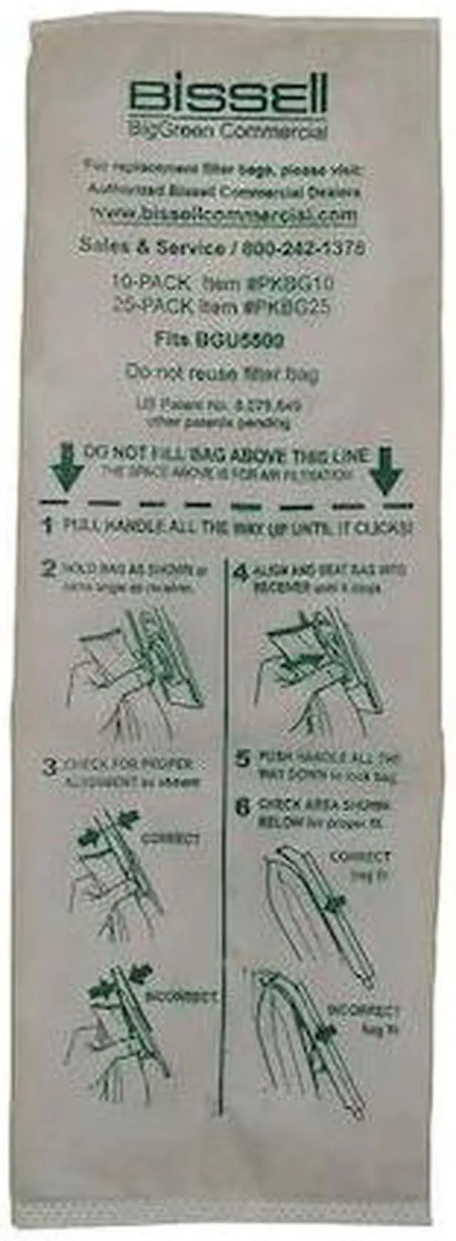 Vacuum Bag, For Vacuum Type Upright Vacuum, Fits Vacuum Brand Bissell (R), Fits Vacuum Models BGU5500, BGU6000, Bag Filtration Type Standard, Filter Efficiency Not Applicable, Bag Material Cloth, Ply Count 2-Ply, Bag Pickup Type Dry, Bag Reusability Disposable, Height 13 1/4 in, Length 7 in, Width/Diameter 13 1/4 in, Package Quantity 25. This item has been restricted from sale in the following state (s): []