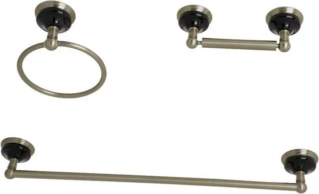 California Proposition 65: This product contains a chemical known to the State of California to cause birth defects or other reproductive harm. This all inclusive set of bathroom accessories features intricate detailing for a luxurious and astonishing style. Any bathroom will be given an added boost of opulence from these coordinated pieces. One 18" towel bar, towel ring, and a toilet paper holder are included for all of your hanging storage needs. Available in multiple, durable finishes.