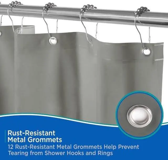 - Rust-resistant metal grommet hang holes prevent rips and tears from shower rings and hooks
