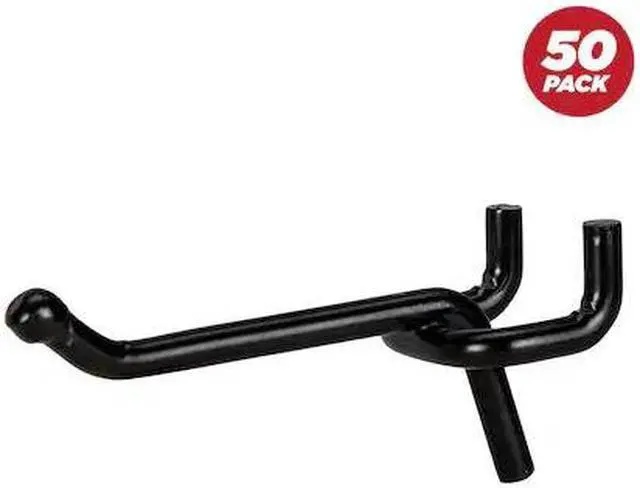 California Proposition 65: This product contains a chemical known to the State of California to cause birth defects or other reproductive harm. These 2 in. peg hooks make it a lot easier to get your items and accessories organized. There are 50, 2 in. pegboard hooks included, which are made with a corrosion-resistant, zinc chrome polish and are designed to fit 1/4 in. holes. These are heavy-duty, commonly used J-style metal hooks and are compatible with pegboards and shelving units.