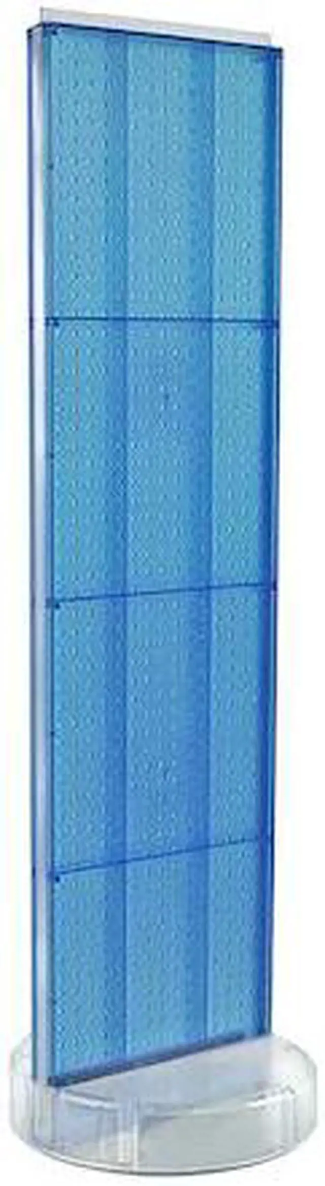 Your display is key to maximizing sales. Presentation of your product, easy customer accessibility, and visual appeal all contribute to your bottom line. Increase your impulse sales using Azars versatile display racks! This two-sided spinning pegboard display stands on an injection molded heavy duty clear plastic revolving base, providing effortless shopping for your customers. The display is simple to assemble with no tools required. Add hooks, bins, bucket or trays, then load your product and youre ready to start selling. The pegboard display is ideal for department and convenience stores (c-stores), tradeshow booths, or any retail environment.