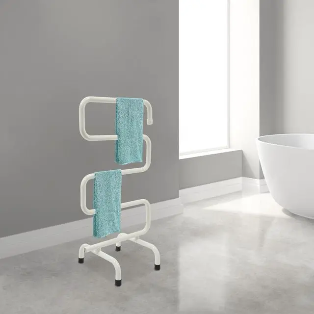Strong structure supports up to about 22.05 lb across multiple rails, accommodating bath sheets, hand towels, and washcloths for families or shared bathrooms