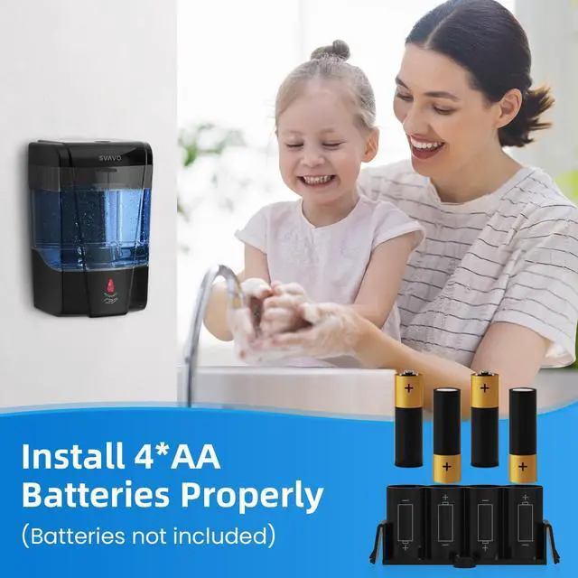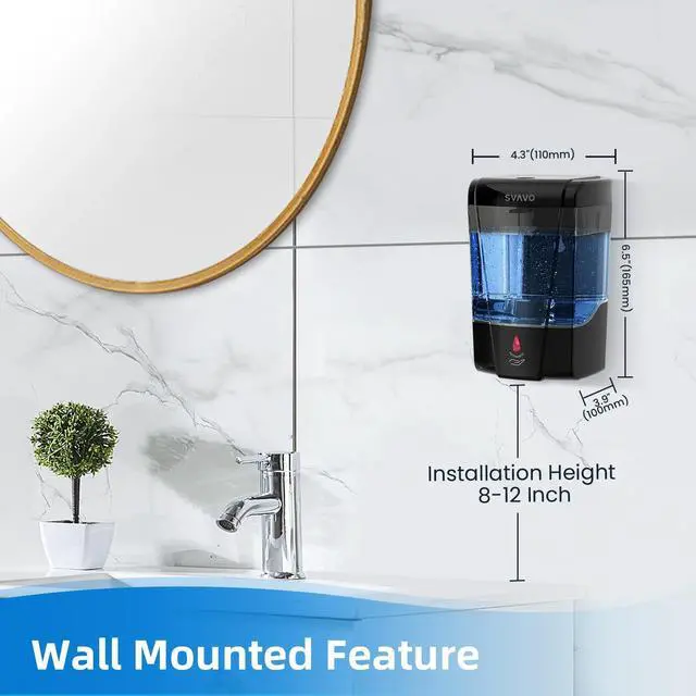 SVAVO wall-mounted automatic soap dispenser is designed in a sleek and elegant shape and premium ABS plastic with a capacity of 21oz to fill soap.