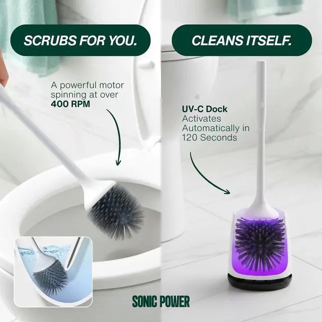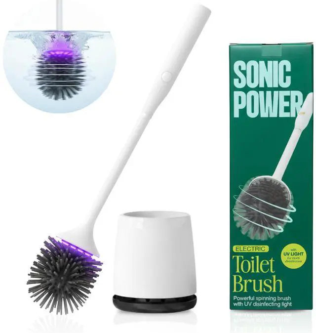 Electric Toilet Brush & Scrubber Self Cleaning Silicone Toilet Bowl Brush with UVC Light, Rechargeable Wireless Spinning Toilet Brush & Holder Set, Wall Mount or Floor Standing (Pack of 1)