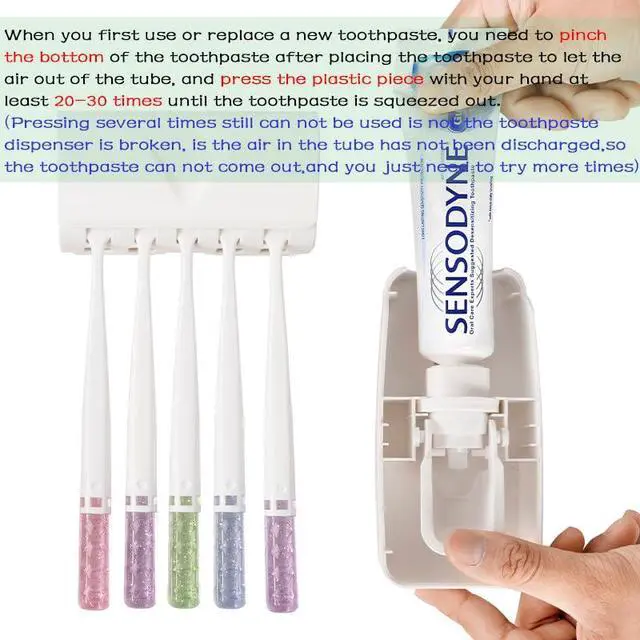 When you first use or replace a new toothpaste, you need to pinch the bottom of the toothpaste after placing the toothpaste to let the air out of the tube, and press the plastic piece with your hand at least 20-30 times until the toothpaste is squeezed out.