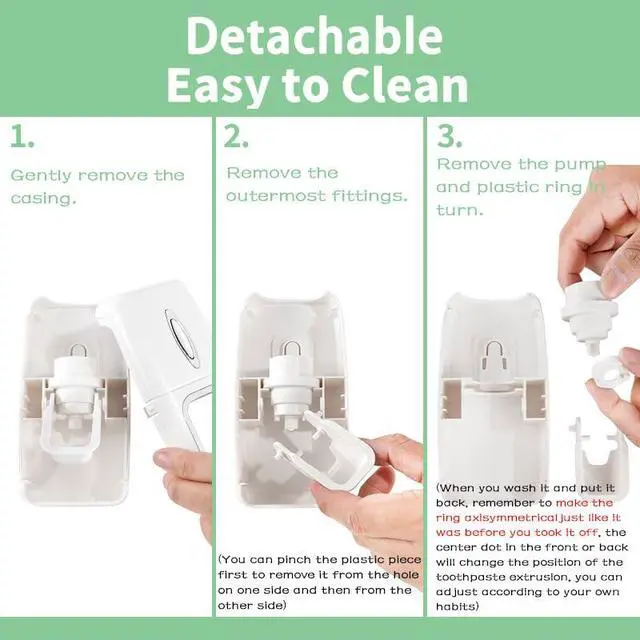 The wall-mounted toothpaste dispenser is detachable for easy cleaning and can be washed directly with water.