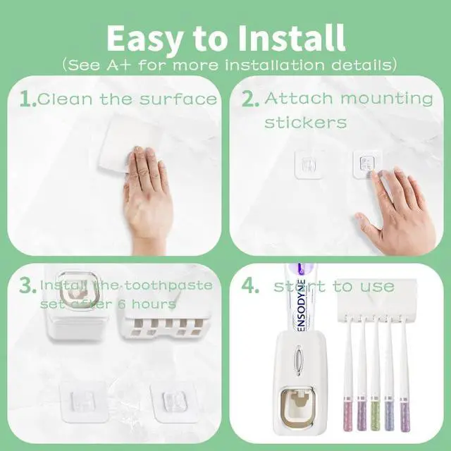 Let it stand for 6 hours to ensure the mounting stickers are secure, and then insert the toothpaste dispenser and toothbrush holder into the two clasps respectively.