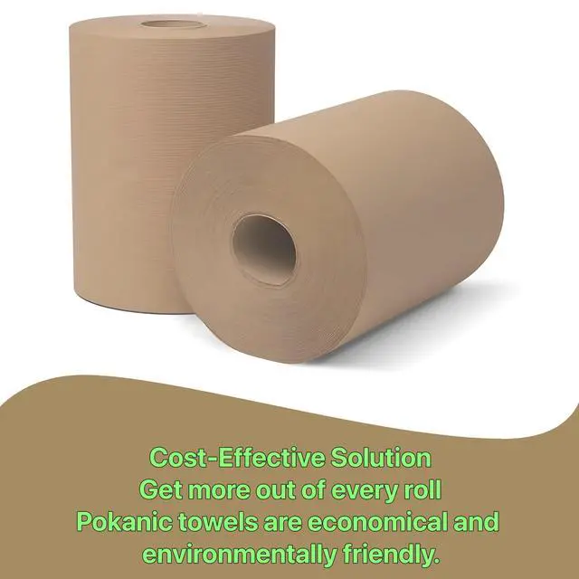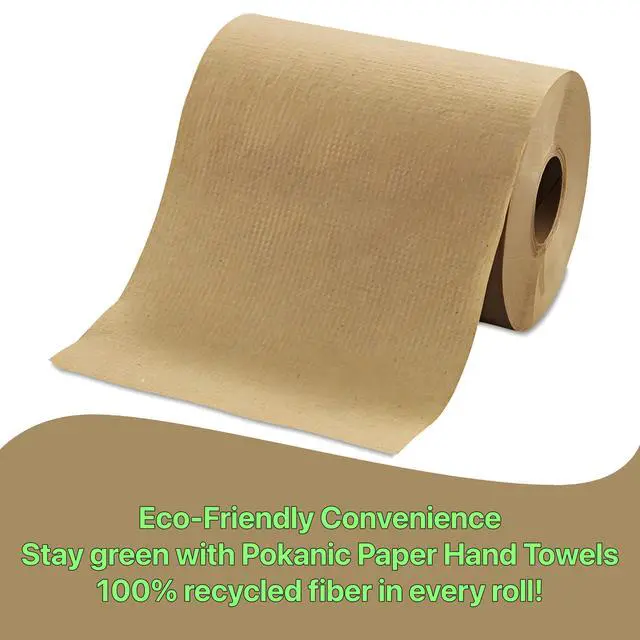 Introducing Pokanic Paper Hand Towels the eco-friendly solution for your restroom and kitchen needs. Each roll features of natural brown, 1-ply hardwound paper, made from 100% recycled fiber, ensuring sustainability without compromising quality. Designed for universal compatibility, these towels fit perfectly in Tork dispensers, making them an ideal choice for high-traffic areas. With a generous width of 8 inches, Pokanic Paper Hand Towels provide excellent absorbency and strength, making them perfect for drying hands efficiently. Whether in a commercial setting or at home, these towels deliver reliable performance while supporting environmentally conscious practices. Stock up on these sustainable hand towels and elevate your cleanliness standards!
