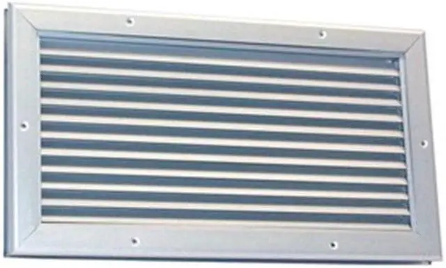 Door Louver, Material Aluminum, Finish Clear Anodized, Louver Opening Height 8 1/2 in, Louver Opening Width 8 1/2 in, Rough Opening Height 8 1/2 in, Outside Height 10 1/8 in, Outside Width 10 1/4 in, Free Area 0.3 sq ft, Flange Width 1 1/4 in, Maximum Door Thickness 2 1/4 in, Minimum Door Thickness 1 3/8 in, Rough Opening Width 8 1/2 in, Blade Angle 45 Degrees, Adjustable Blades No, Intake or Exhaust Application Exhaust, Intake, Includes Fasteners, Number of Blades 14.