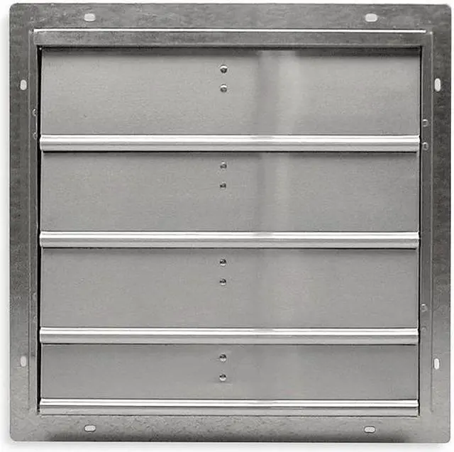 15 In. H-W 6 In. L Aluminum Wall Backdraft Dampr, Damper Application Backdraft, For Nominal Duct Diameter Not Applicable, Frame Material Galvanized Steel, Number of Panels 1, Maximum Air Velocity 2000 fpm, Overall Height 15 in, Rough Opening Diameter 12 1/2 in, Rough Opening Shape Square, Fits Fan Diameter 12 in, For Duct Shape Not Applicable, Free Area 0.8 sq ft, Overall Width 15 in, Frame Material Thickness 20 ga, Overall Length 6 in, Connection Type Not Applicable, Frame Depth 2 1/4 in.