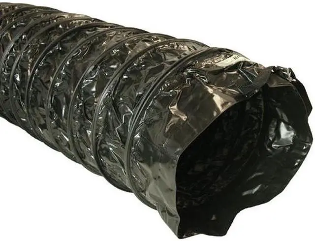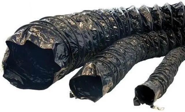 California Proposition 65: This product contains a chemical known to the State of California to cause birth defects or other reproductive harm. The Air Ventilator Black is the ultimate flexible ducting solution for wide ranging air movement applications. This hose has an outstanding array of qualities and capabilities, setting it apart as a high-quality but affordable air movement product. Tough enough for industrial applications and affordable enough for residential use, the Air Ventilator also has a temperature tolerance of -20 to +180 degrees Fahrenheit. It can be used in anything from dehumidifier ducting to HVAC, portable air conditioning, smoke and hot air transportation, as well as all-purpose ventilation. This is a truly versatile duct hose for all settings and situations. These hoses are lightweight, constructed from a PVC-coated polyester fabric, making them exceptionally tough and durable. The body of the Air Ventilator is reinforced with a spring steel helix, which gives the duct work a higher degree of strength and helps it to keep its shape when flexed and put under pressure. Additionally, the hose has an external wear-strip. This rugged coating is added to protect the hose from excessive wear when it is dragged across the ground and ensure that it remains effective for the long term.