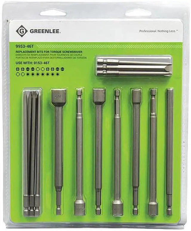 The Greenlee 9953-46T Bit Set is a high-quality steel bit set that contains 19 pieces. This 19-piece bit set has hex shank sizes ranging from 1/4 in. to 3/8 in., so you can choose the one that best suits your application. It features accuracy, durability and compactness, which makes it the ideal choice for any job. The fastening tool item is a bit set, while the fastening tool material is steel. The bits have hex shank sizes ranging from 1/4 in. to 3/8 in., which means they are compatible with various tools and devices such as drills and drivers.