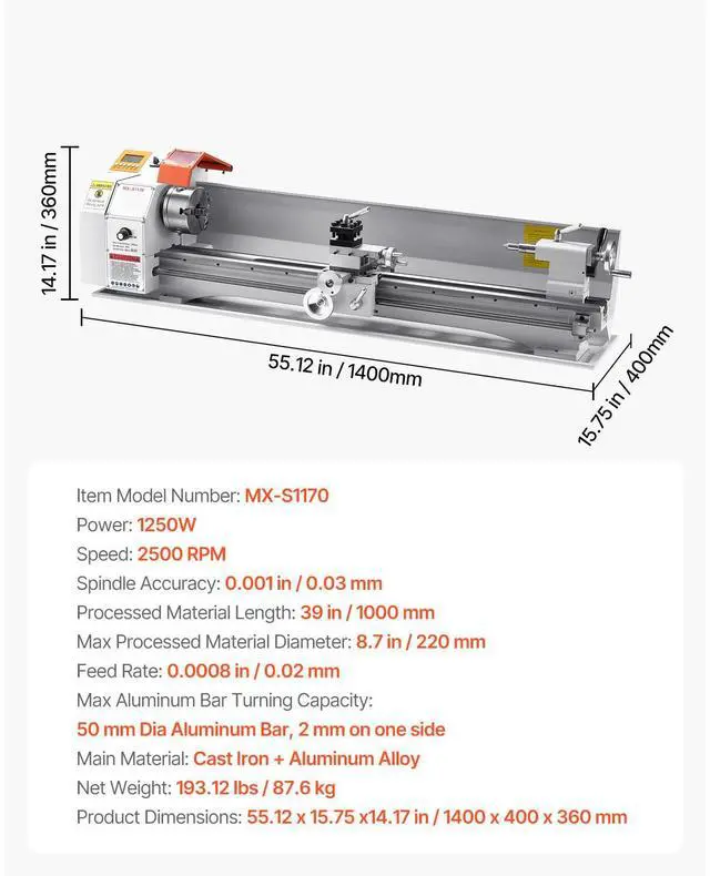 Max Aluminum Bar Turning Capacity: 50 mm Dia Aluminum Bar, 2 mm on one side