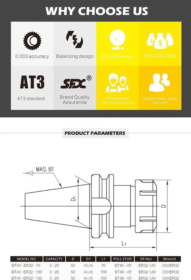 1.Concentricity accuracy 0.003mm, taper shank is case hardened to 56-58 HRC