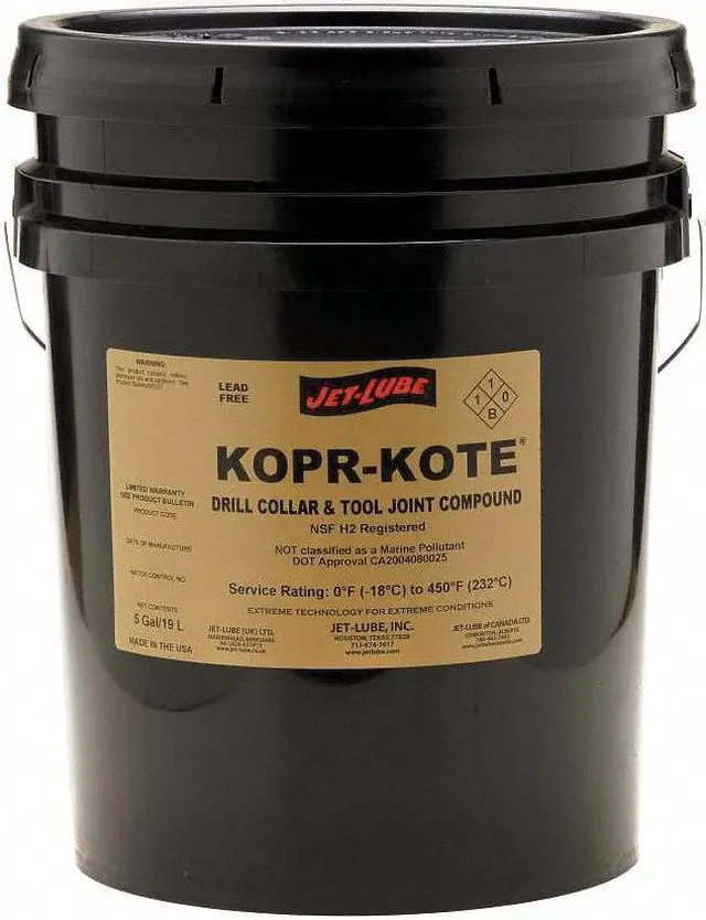 Jet-Lube Kopr-Kote Drill Collar & Tool Joint Compound contains copper flake, graphite, and other natural expreme pressure and anti-wear additives. For geothermal wells, high-angle holes, problem holes involving high temperatures, whip stocks, and horizontal drilling applications. Joint/Drill Collar Compound, 1 Gal