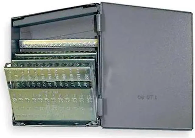 Drill Bit Case, Jobber Length, Holds #1-60 Wire Gage, Steel, Overall Case Width 3 9/16 In, Overall Case Depth 5 7/8 In, Overall Case Height 1 25/64 In, Number of Compartments 60, Drill Bits Not Included. This item has been restricted from sale in the following state (s): []