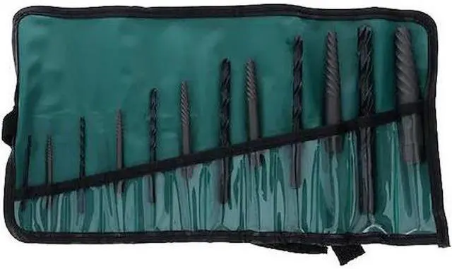 Screw Extractor Set, Extractor Type Spiral Flute Extractor, Number of Pieces 12, Drill Size 1/4 in, 13/32 in, 17/64 in, 5/32 in, 5/64 in, 7/64 in, For Bolt Size #8 to 1 in, Material - Machining Carbon Steel, Overall Length 2 in, 2 3/8 in, 2 3/4 in, 3 in, 3 3/8 in, 3 3/4 in, Container Type Pouch, Drive Type Square. This item has been restricted from sale in the following state (s): []