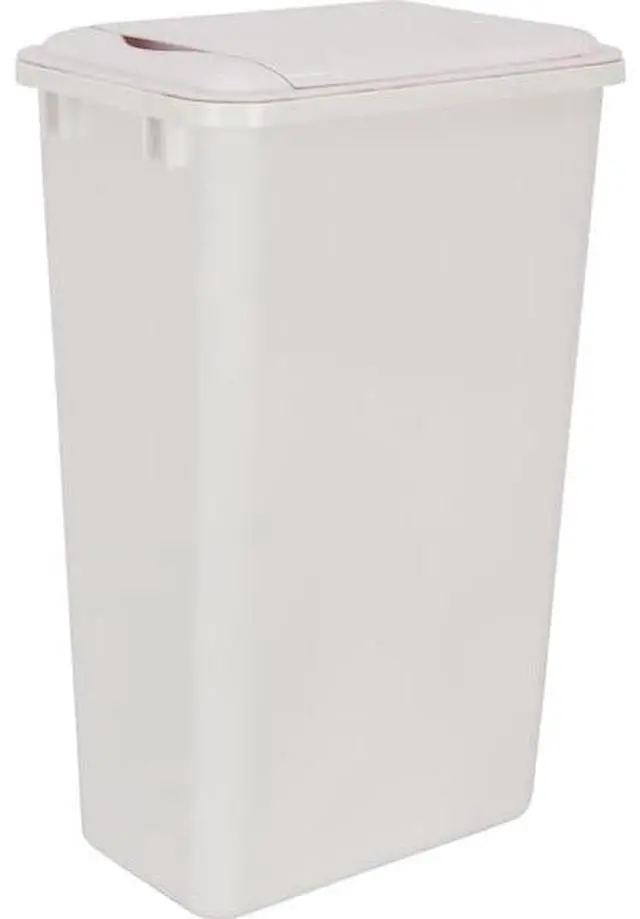 Keep trash contained or recyclables sorted with a waste container lid. Designed to fit Hardware Resources' 50 qt white waste container cans, the two-piece plastic part sits on top of the waste container and lid has a spring opening.