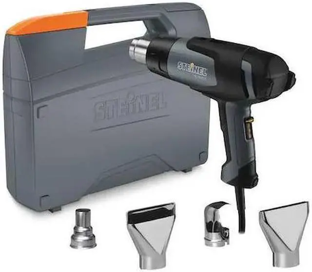 Heat Gun Kit, Heat Gun Handle Style Pistol, ESD Safe No, Surface Temperature Control No, Voltage 120V AC, Plug Type Two-Prong, Temperature Settings Variable, Maximum Temperature 1, 100 Degrees F, Minimum Temperature 120 Degrees F, Temperature Range 120 Degrees to 1, 100 Degrees F, LCD Display No, Current 12 A, Kit Contents (1) Bare Tool, (4) Nozzles, Tool Brand Steinel, Air Volume 4 cfm, Nozzle Outside Diameter 1 5/16 in, Brushless Motor No. This item has been restricted from sale in the following state (s): []