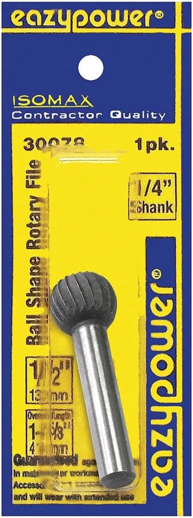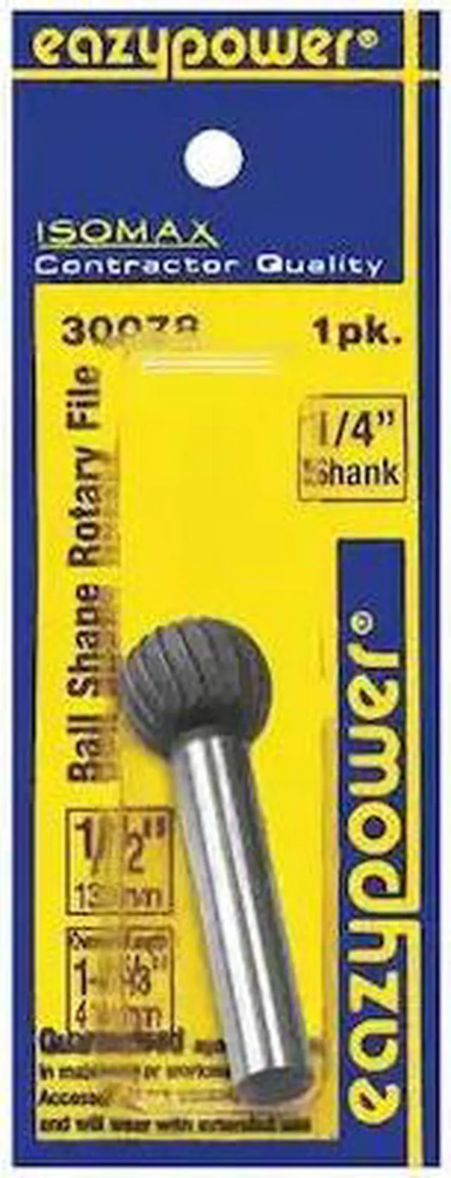 Rotary File, Rotary Tool Accessory Type Rotary File, Bit Material Alloy Steel, Shape Ball, Max. Speed 2, 500 RPM, Shank Diameter 1/2 in, Mount Type Mounted, Overall Length 1 5/8 in, Burr Diameter 1/2 in, Head Length 1/2 in, Head Width 1/2 in, Material Application Bronze, Iron, Mild Steel, Plastic, Soft Metal, Wood. This item has been restricted from sale in the following state (s): []